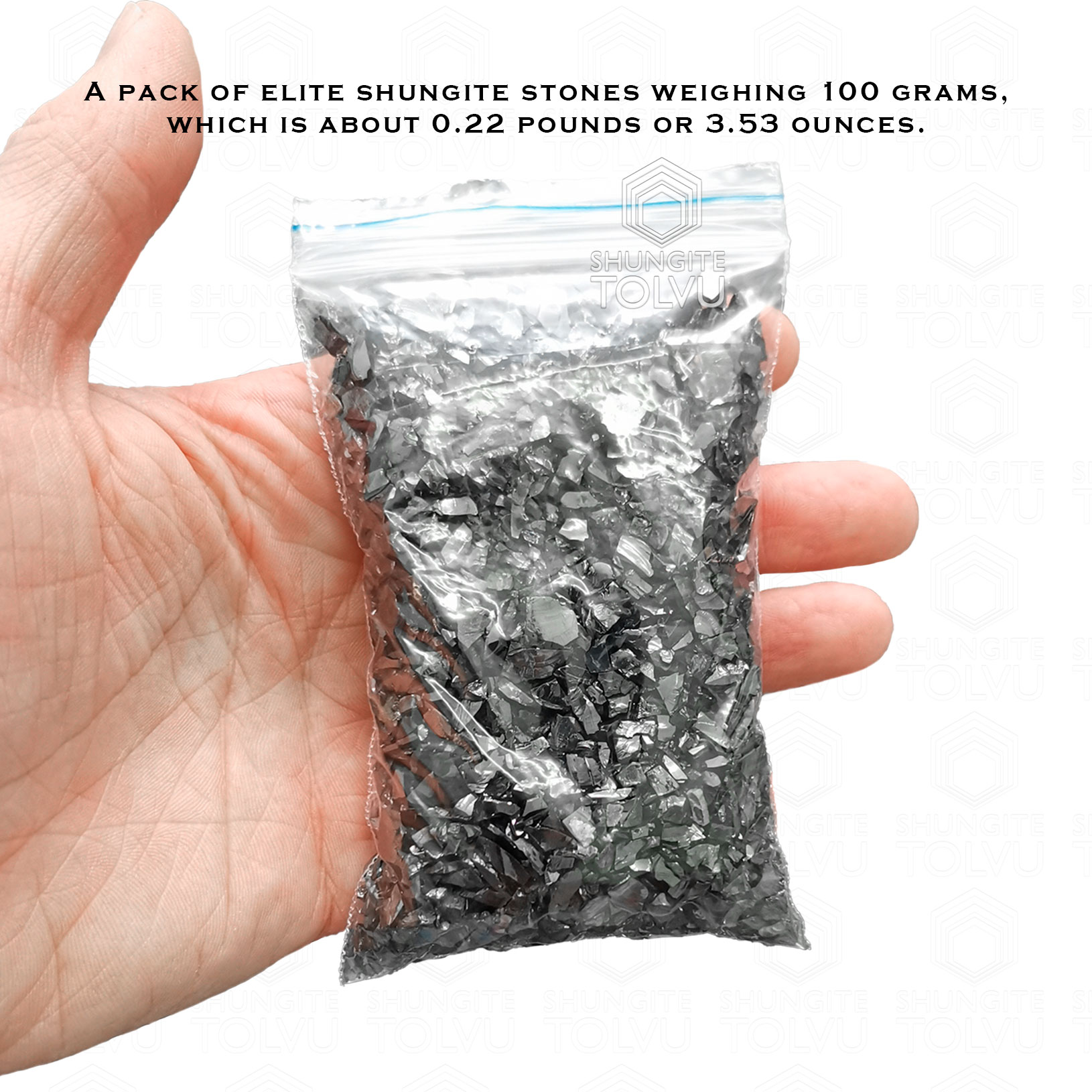 Noble shungite natural stone with fullerene c60 of small size. The size of each stone is about 1-10mm / 0.04 – 0.4 inches. Select the total weight of the package.