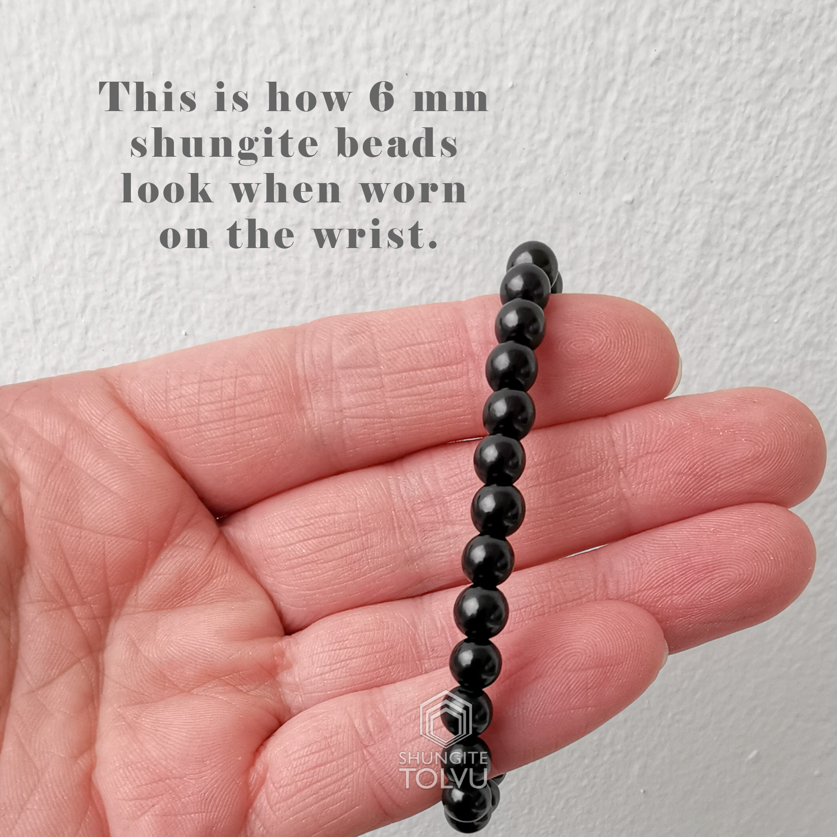 Each bead is carefully shaped from real shungite. Due to the natural origin of the stone and the cutting process, minor differences in size and roundness may occur. These variations are expected and confirm that the beads are made from natural material rather than mass-produced molds.